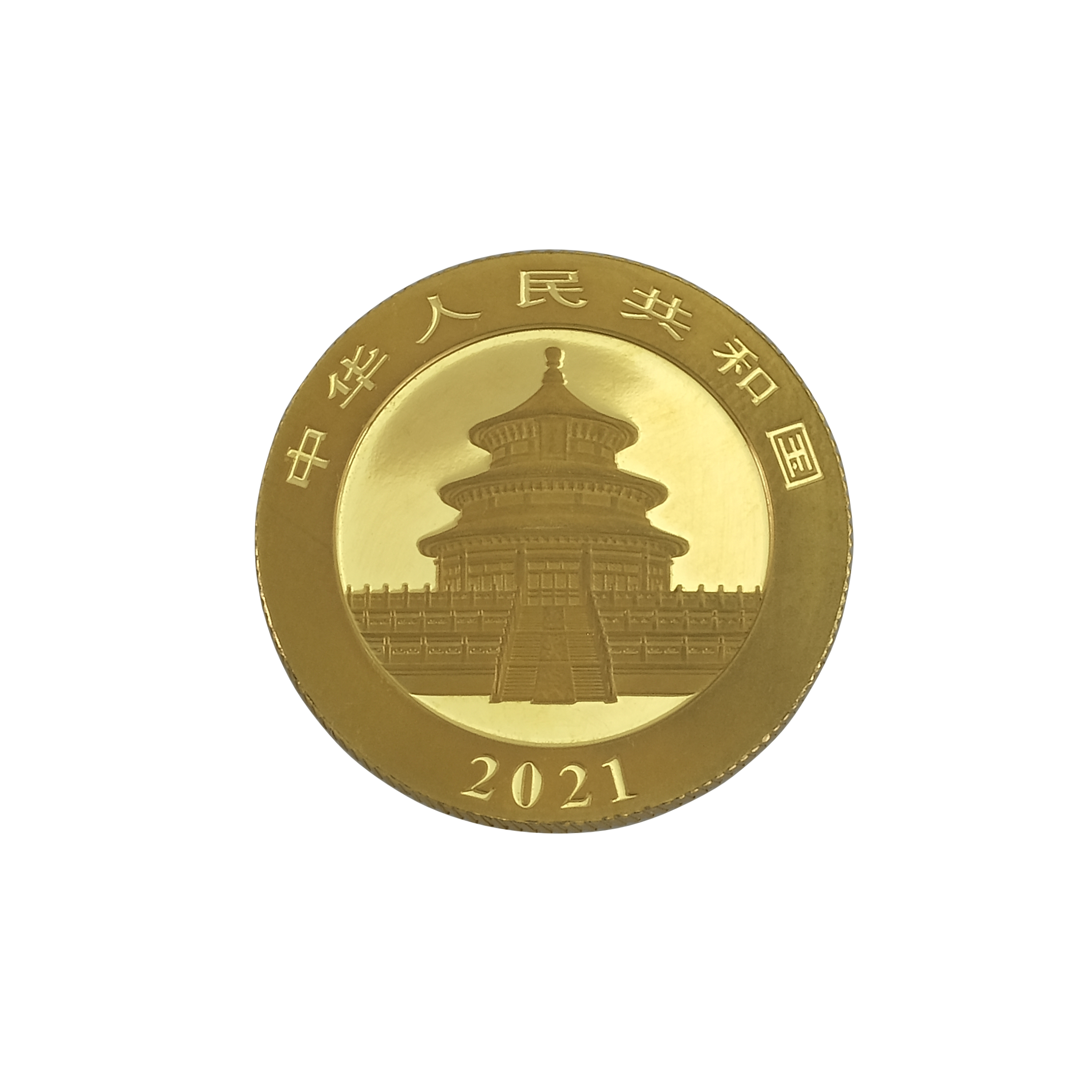 The 8g Chinese Panda Gold Coin is a bullion coin produced by the China Gold Coin Corporation. It features a unique design on the reverse side, showcasing a panda in its natural habitat, with bamboo shoots and leaves in the background. The obverse side of the coin features an image of the Temple of Heaven in Beijing, along with the year of issue. The 8g Chinese Panda Gold Coin is struck in 99.9% pure gold and has a weight of 8 grams, or 0.2572 troy ounces and has a face value of 100 yuan making it legal tender in China.