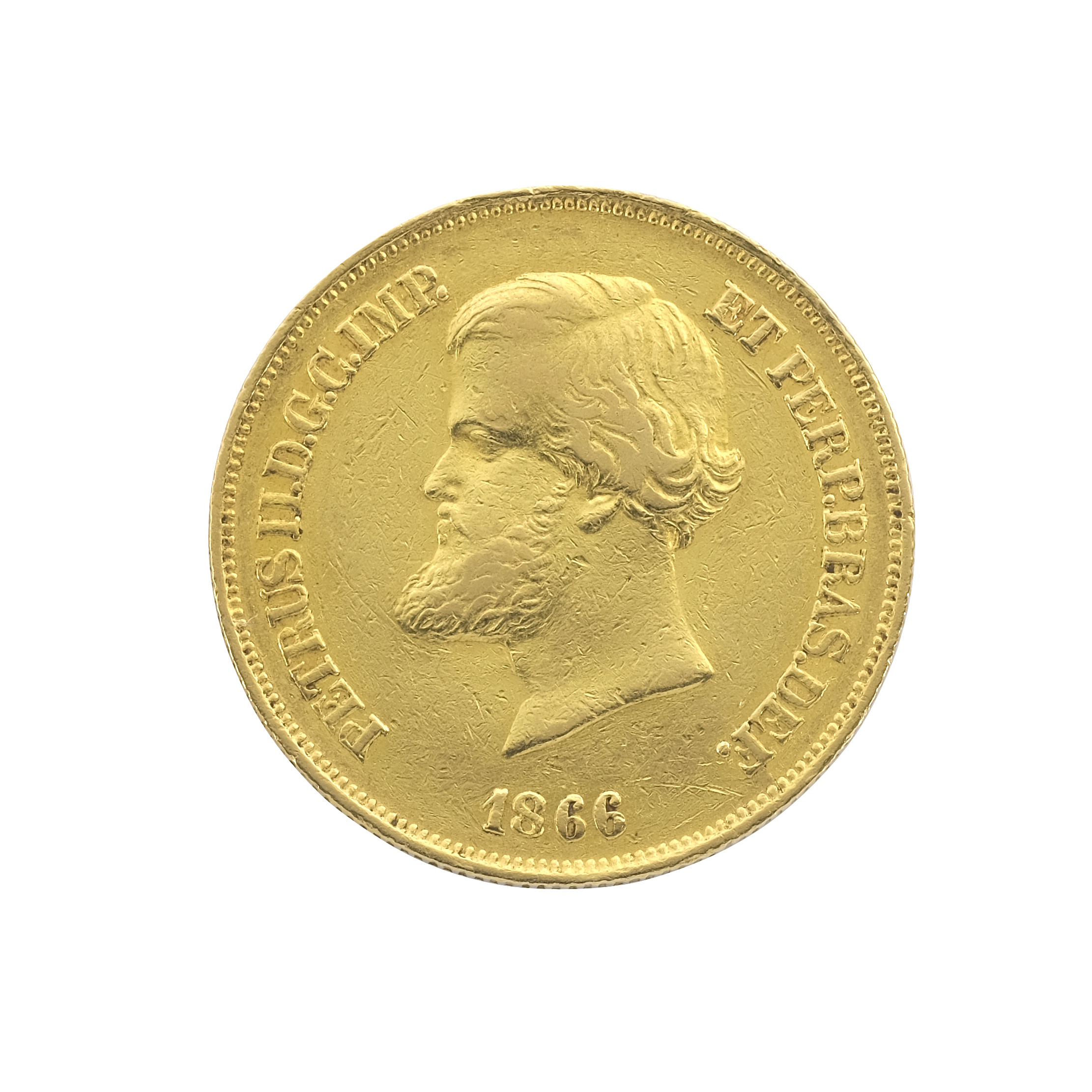 The 10000 Reis Gold Coin featuring Pedro II is a remarkable piece in the history of Brazilian numismatics. Minted in the 19th century during the reign of Emperor Dom Pedro II, the last monarch of Brazil, this coin stands as a symbol of a significant period in Brazilian history. The obverse of the coin features a portrait of Pedro II, signifying the power and prestige of the Brazilian monarchy. On the reverse, the coin showcases the coat of arms of the Empire of Brazil, further emphasizing the country’s rich heritage. The 10000 Reis Gold Coin weighs approximately 8.96 grams and is made of .9170 fine gold, equating to a gold content of about .2643 ounces. Its historical significance, combined with its gold content, makes it a valuable investment and a notable addition to any coin collection. You will receive a coin chosen from our stock of a variety of years.