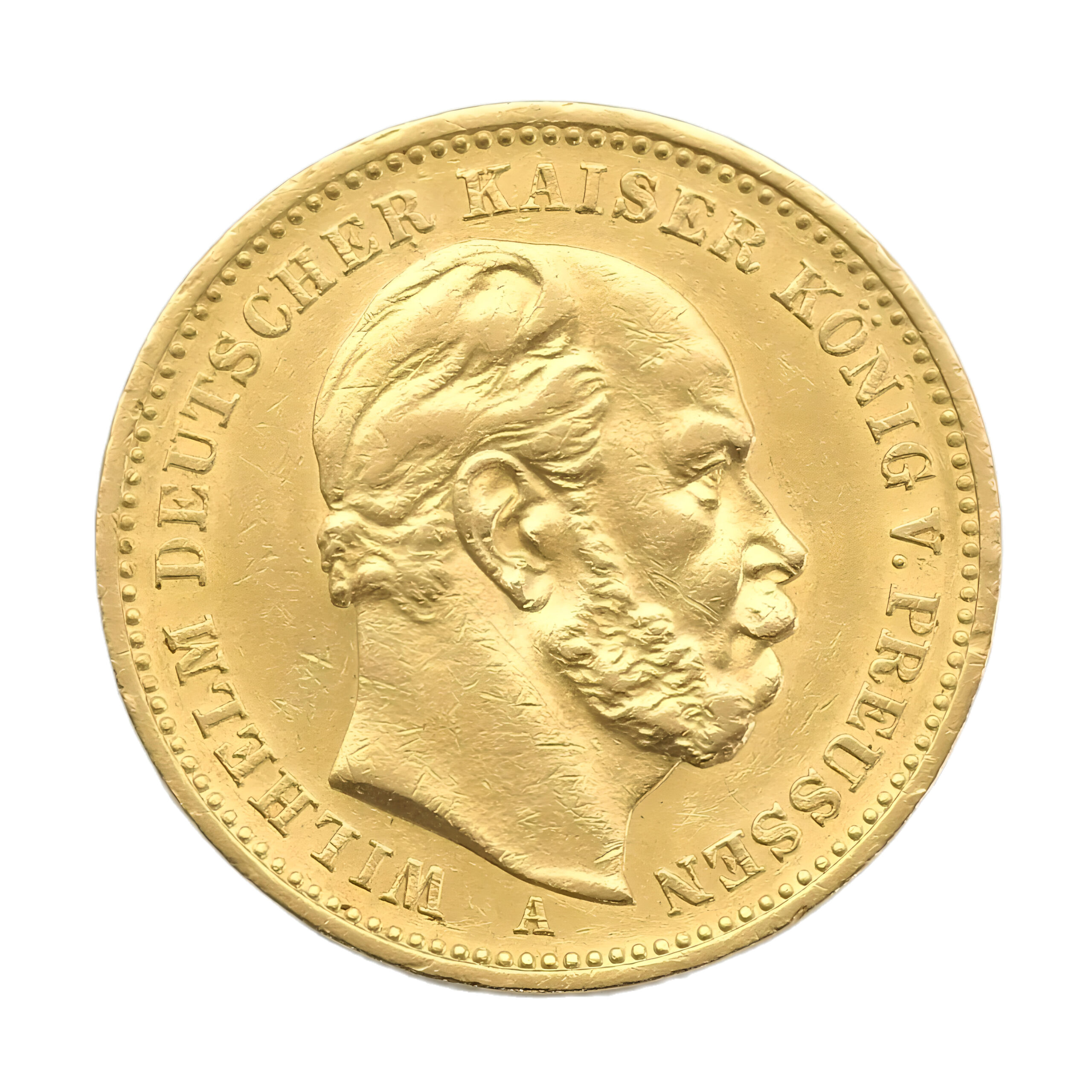 The 20 Mark coin featuring Wilhelm I is a notable artefact of German numismatics, encapsulating a vital chapter of Germany’s imperial history. Minted during the reign of Kaiser Wilhelm I, who ascended the throne in 1871 and served until he died in 1888, this coin commemorates the establishment of the German Empire. The obverse of the coin is adorned with a distinguished portrait of Wilhelm I, exuding a sense of authority and grandeur, reflective of his role as the first Emperor of a unified Germany. The reverse side typically bears the imperial eagle, symbolizing national unity and strength, a poignant reminder of Germany’s newfound status as an empire under Wilhelm I’s leadership. Struck in .900 fine gold and weighing approximately 7.965 grams, the 20 Mark Wilhelm I gold coin not only represents a significant monetary asset but also serves as a historical token of Germany’s imperial ambitions and achievements. Its rarity, historical importance, and the craftsmanship involved in its minting make it highly coveted among collectors and historians, who value its significance in the tapestry of European royal history. You will receive a coin from our stock of a variety of years.