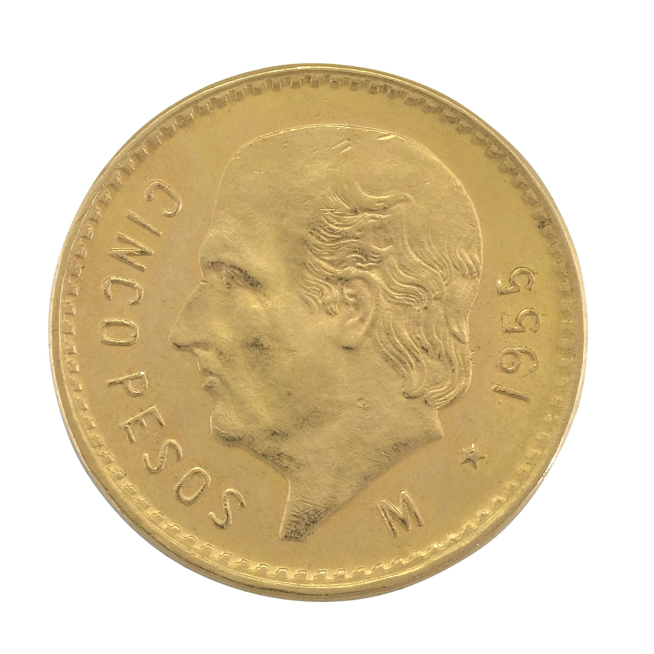 The Mexico Cinco Pesos Gold Coin, minted from 1905-1955 holds great significance in Mexican history. Produced by the esteemed Mexican Mint, this coin is crafted from .900 fine gold and contains approximately .1205 Troy ounces of the precious metal. On its obverse side, the coin showcases a captivating representation of the national coat of arms, featuring a majestic eagle perched on a cactus with a snake in its beak. This emblem symbolises the founding of Tenochtitlan. On the reverse side, a portrait of the revered national war hero, Miguel Hidalgo, takes centre stage. Hidalgo, the leader of the Mexican War of Independence, is immortalised on this coin. The Mexico Cinco Pesos Gold Coin not only embodies Mexico’s rich historical heritage but also holds great value for collectors and investors due to its gold content and its representation of Mexican identity and pride. In 1955-1972 restrikes were made of this coin using the 1955 date.