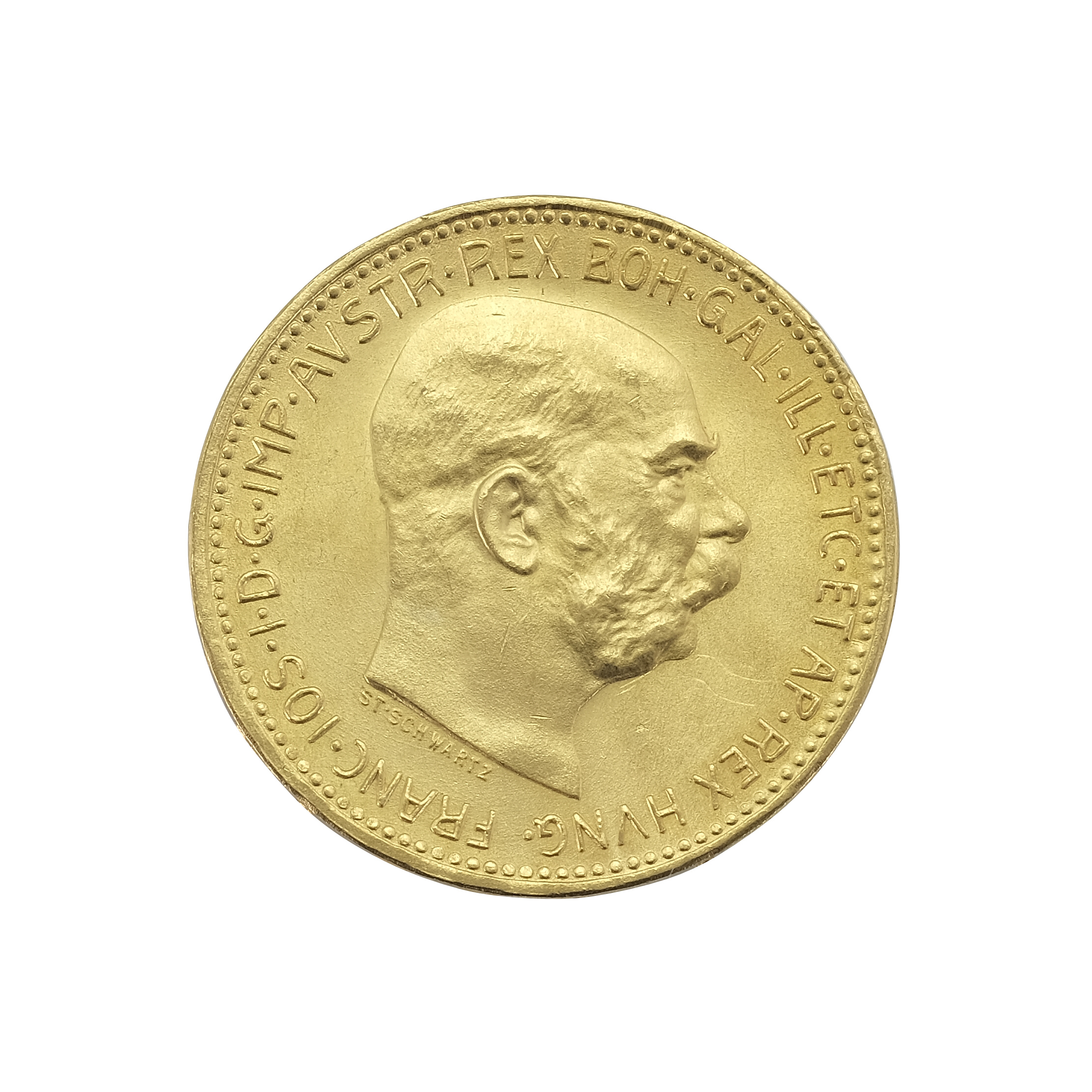 Gold Austrian Coronas coins are highly sought after by numismatists and coin collectors for their historical and aesthetic qualities. These coins were first issued in 1908 to serve as the main circulation coin of Austria, this coin has a face value of 20 Corona. This coin is 6.77g in weight with a fineness of 900.0 and is composed of (6.09 grams) of pure gold.