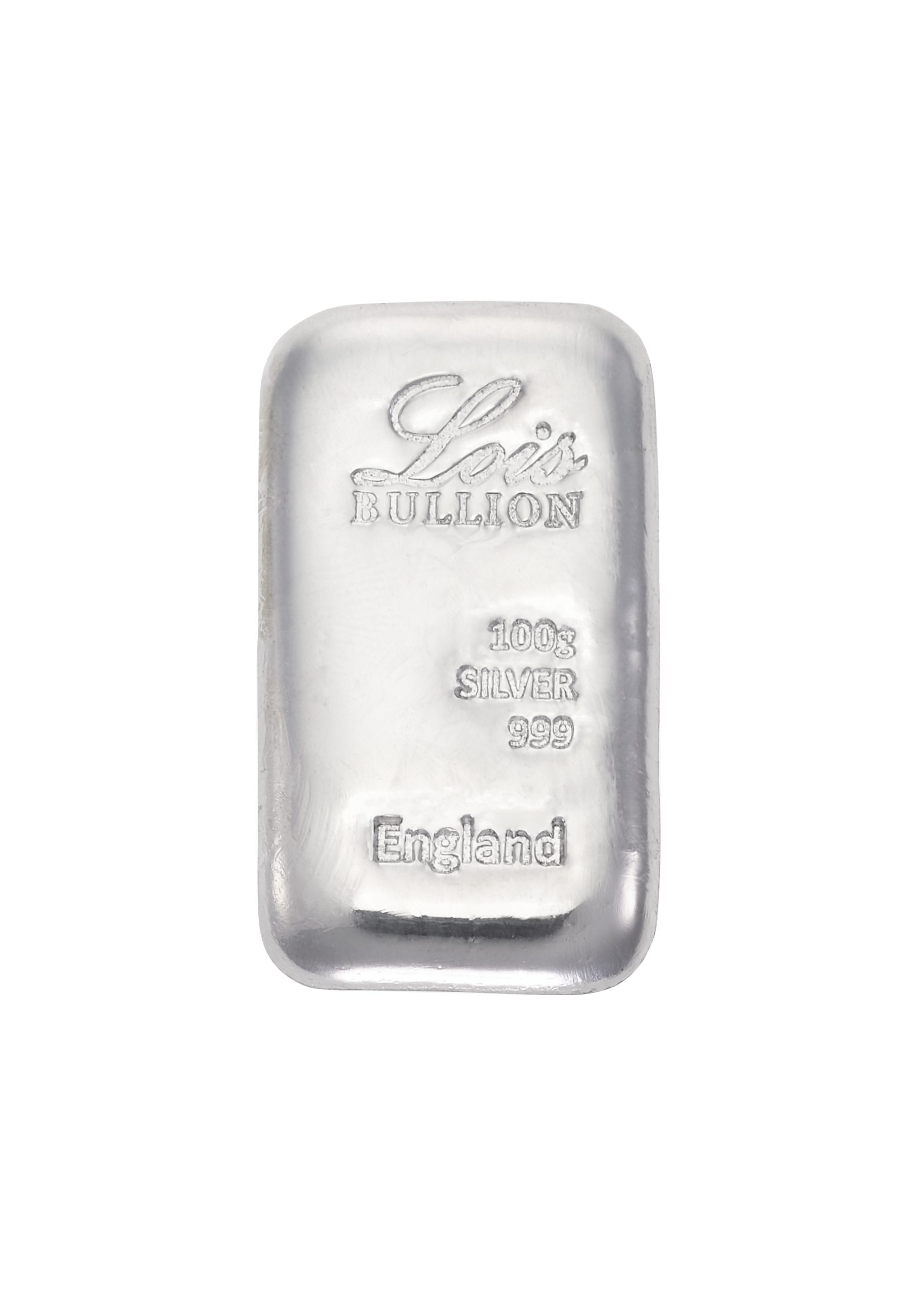Brand new Lois Bullion 100g 999 silver bar, this silver cast bar is 0.999 purity and popular with investors.